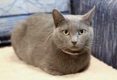 Кошка-мама Луна — русская голубая или близкий метис, 3–4 года.