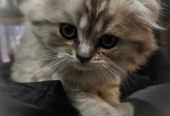 Это настоящий аристократ с роскошной длинной шерстью и забавными загнутыми ушками. Окрас — красивый табби. Когда гладишь его, рука просто утопает в мягкости — он как маленькая плюшевая игрушка, только живая и мурлыкающая.