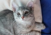 Чудесная крошка дымчатого окраса. Ласковая, очень нежная и душевная девочка. Любит посидеть на ручках и помурлыкать о своем. Наполнит ваш дом радостью, а сердце теплом. Возраст 4 мес. Здорова, в туалет ходит в лоточек, отлично ладит с другими животными.